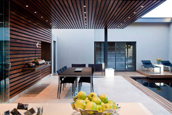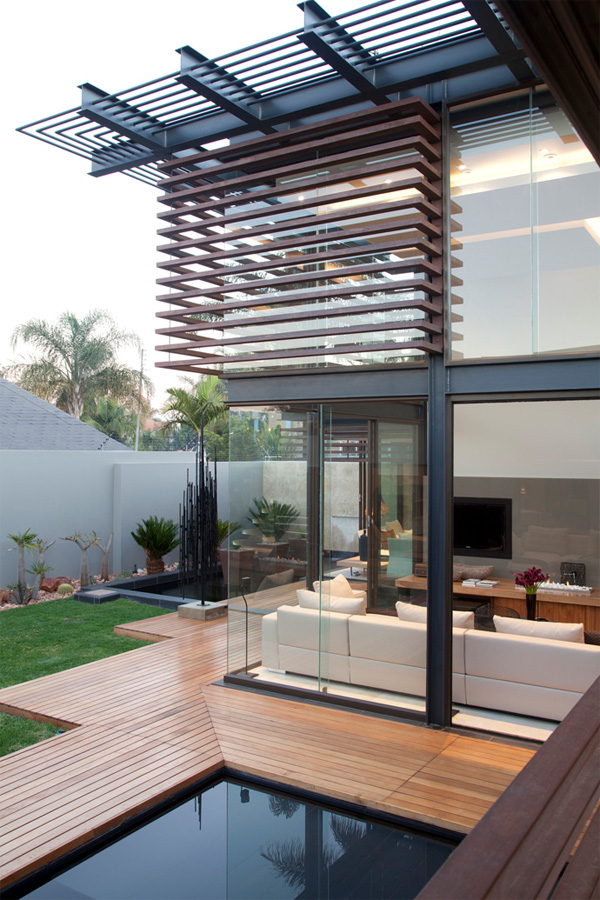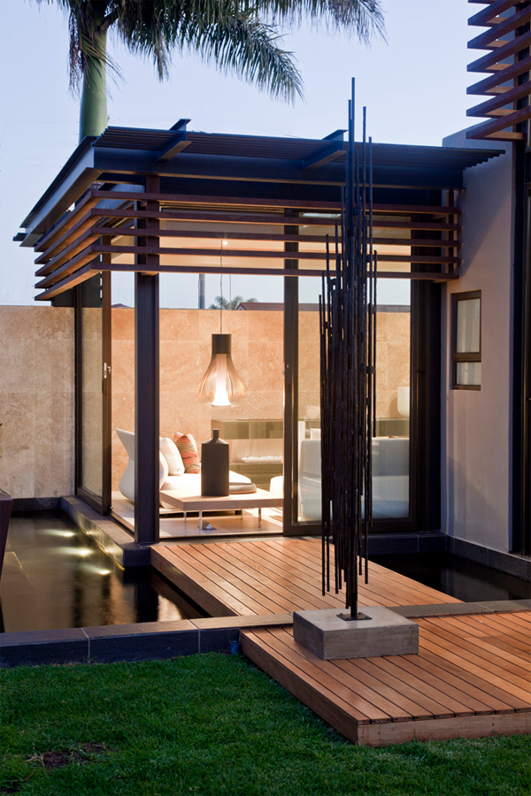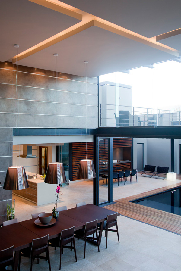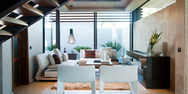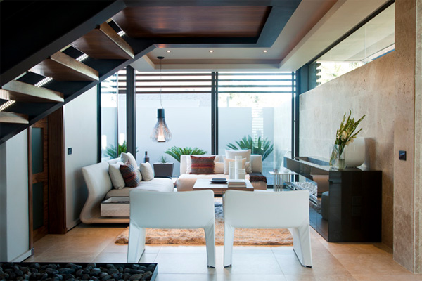 Nico van der Meulen หนึ่งในสถาปนิกชื่อดังของแอฟริกา ที่ออกแบบบ้านสไตล์โมเดิร์นได้อย่างสวยงามและหรูหรา เป็นผู้ออกแบบตกแต่งบ้านหลังนี้ค่ะ เขาสร้างบ้านหลังนี้โดยคำนึงถึงสภาพแวดล้อม ภูมิอาการของประเทศก่อนเป็นอันดับแรก เขาจึงออกแบบให้ตัวบ้านออกมาในลักษณะเปิดโล่ง ติดตั้งกระจกรอบบ้าน เพื่อรับลมเย็นๆ และช่วยประหยัดพลังงานได้เป็นอย่างดี แต่ก็คำนึงถึงแดดในยามบ่ายที่ร้อนจัด เขาจึงตีไม้ระแนงกั้นบังเพื่อเป็นตัวช่วยกรองแสงแดด