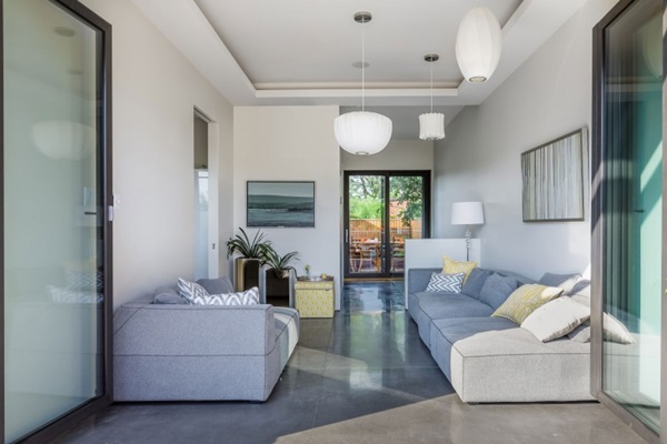 ภายในตกแต่งด้วยแบบร่วมสมัย มีความสะดวกสบาย ในโทนสีขาว เทา น้ำตาลและดำ ใช้วัสดุไม้มิกซ์เข้ากับวัสดุอื่นๆ ได้อย่างลงตัว ตกแต่งรูปแบบห้องแบบเปิดในส่วนของห้องครัว ห้องนั่งเล่น และพื้นที่รับประทานอาหาร ทำให้ภายในดูโปร่งโล่ง ไม่อึดอัด ห้องครัวกว้างขวาง เฟอร์นิเจอร์ครัวสีขาวทันสมัย ห้องนั่งเล่นขนาดใหญ่ โต๊ะรับประทานอาหารอยู่เยื้องไปในบริเวณใกล้ๆ กัน ด้านหลังมีบันไดไม้ขอบกระจกสวยโมเดิร์นเป็นเส้นทางพาขึ้นไปยังชั้นสองของบ้าน