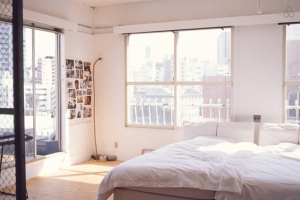 ตกแต่งภายในโดดเด่นด้วยประตูตาข่ายสีดำ เป็นกำแพงกั้นเพียงครึ่งเดียว ระหว่างห้องนั่งเล่นและห้องนอนออกจากกัน โคมไฟที่ห้อยหลอดไฟอยู่ด้านบนเพดานก็ดูเข้ากันได้ดีกับสไตล์การตกแต่งอุตสาหกรรมเช่นนี้ มีโต๊ะรับประทานอาหารไม้ควบคู่กับโซฟาเดี่ยวแนววินเทจที่ทำมาจากหนัง และมีมุมห้องนั่งเล่นที่โดดเด่น ทีวีไม่มี แต่ใช้เป็นโปรเจคเตอร์ฉายผ่านทางกำแพงแทน ดูเก๋ไม่เบาเลยล่ะค่ะ นอกจากนี้ยังมีห้องน้ำที่ทำเป็นประตูกระจกอีกด้วย ว่าแล้วก็ลองมาชมภายในห้องนี้เต็มๆ กันดูเลยดีกว่า หากใครชอบก็เก็บไอเดียนี้ไว้ประยุกต์กันดูนะคะ