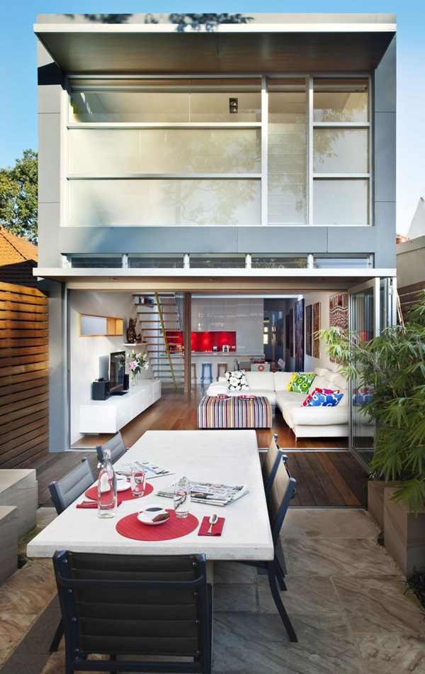 บางครั้งเราก็ไม่จำเป็นต้องตกแต่งบ้านในรูปแบบเดียวเสมอไปก็ได้นะคะ คุณสามารถรตกแต่งบ้านแบบมิกซ์ผสมสไตล์เข้าด้วยกันก็ได้ค่ะ ทำให้บ้านออกมามีเอกลักษณ์โดดเด่น สวยงาม เหมือนอย่างบ้านหลังนี้ที่เรานำมาฝากให้คุณได้ชม บ้านนี้มิกซ์ดีไซน์ภายนอกตัวบ้านแบบดั้งเดิมผสมกับสไตล์โมเดิร์นออกมากลายเป็นบ้านหลังใหม่ที่ดูโดดเด่นมากกว่าบ้านหลังอื่นๆ ในระแวกเดียวกัน ที่สำคัญยังมีเอกลักษณ์ไม่เหมือนใครอีกด้วยกันกับบ้านหลังนี้ที่มีชื่อว่า House Leichhardt ออกแบบโดย Rolf Ockert Design เป็นบ้านที่ตั้งอยู่ที่ Sydney, Australia ภายนอกตัวบ้านด้านหนึ่ง เป็นบ้านสไตล์แบบเก่า ตกแต่งด้วยอิฐบล็อก มีหลังคาเหล็กดัดดูหวานๆ เล็กน้อย ทางเดินปูด้วยกระเบื้อง มีรั้วบ้านเหล็กดัด เป็นส่วนที่อยู่บริเวณหน้าบ้านให้เราเห็น แต่เมื่อเรามองเลยเข้าไปจะเห็นว่าตัวบ้านหลังนี้เชื่อมต่อกับบ้านอีกรูปแบบหนึ่งในสไตล์โมเดิร์น ทำให้ดูเก๋และมีเอกลักษณ์ต่อผู้พบเห็นไม่น้อยเลยล่ะค่ะ