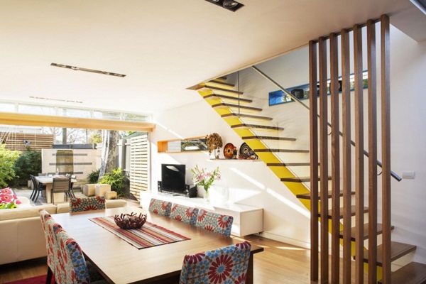 ภายในตัวบ้านนั้นก็ตกแต่งได้สวยงามน่าอยู่ในแบบร่วมสมัย กว้างขวาง โปร่งโล่งสบายตา มีพื้นที่นั่งเล่น หรือ นั่งรับประทานอาหารนอกบ้านอยู่ทางด้านหลังตัวบ้าน บนชานไม้ที่สามารถเดินออกมาได้จากการเปิดประตูกระจกกั้นภายในห้องนั่งเล่นของบ้านนั่นเองค่ะ ตกแต่งภายในโทนสีสันสดใสแทรกมาในส่วนของตกแต่ง ไม่ว่าจะเป็นหมอนอิง ภาพศิลปะ เฟอร์นิเจอร์บางส่วน ทำให้ในบ้านดูมีชีวิตชีวามากขึ้น สดใสมากๆ เลยล่ะค่ะ ว่าแล้วก็ลองไปชมไอเดียแต่งบ้านเก๋ หลังนี้กันดูนะคะ