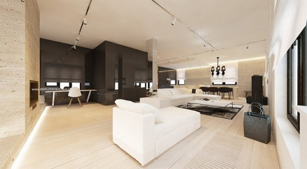 วันนี้เรามีผลงานการออกแบบตกแต่งภายในจากบริษัท Katarzyna Kraszewska architectural design group เป็นการตกแต่งในสไตล์โมเดิร์น สวย เรียบ แอบหรู ด้วยการแต่งบ้านในโทนสีขาว ดำ และน้ำตาล ไม่ว่าจะเป็นการจัดสรรพื้นที่ และการเลือกใช้เฟอร์นิเจอร์เข้ามาตกแต่ง ล้วนคัดสรรได้อย่างลงตัว บ้านหลังนี้เลือกใช้เฟอร์นิเจอร์ไม่มากนัก เน้นเฉพาะที่จำเป็นในการใช้งาน และมีประโยชน์จริงๆ เนื่องจากเจ้าของบ้านต้องการให้บ้านมีพื้นที่โล่งกว้าง ดูไม่อึดอัด ให้ความรู้สึกสบาย อบอุ่น ภาพรวมจึงออกมาเป็นแบบที่เห็นค่ะ
