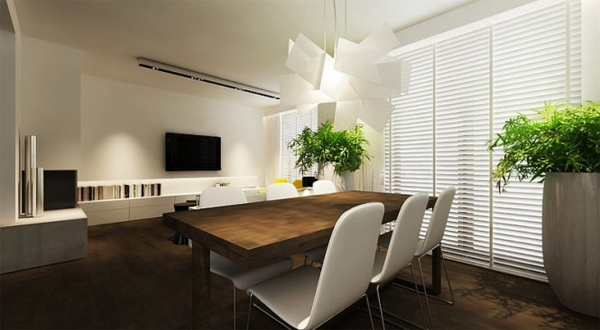 และการเลือกใช้บันไดที่เปิดโล่ง ไม่มีสิ่งกีดขวางใดๆ ก็ช่วยให้บ้านดูมีพื้นที่กว้างขวางขึ้นได้เช่นกันค่ะ และสำหรับห้องทานอาหาร สร้างจุดสนใจได้เป็นอย่างดีด้วยการใช้โคมไฟดีไซน์เก๋ เข้ามาตกแต่ง ทำให้ห้องอาหารดูโออ่า อย่างสมบูรณ์แบบค่ะ ว่าแล้วเรามาชมผลงานการตกแต่งในสไตล์โมเดิร์นกันเลยค่ะ
