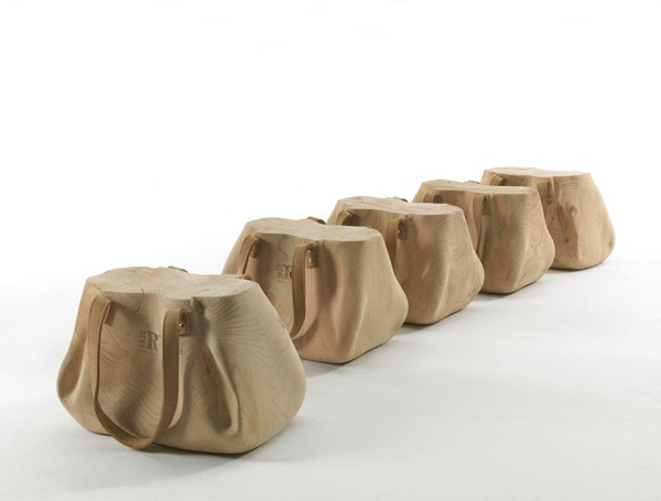 เก๋ดีแฮะ! เก้าอี้สตูลไม้ดีไซน์กระเป๋าถือ อยากจะนั่งที่ไหน ก็หิ้วย้ายที่ไปได้ง่ายๆ