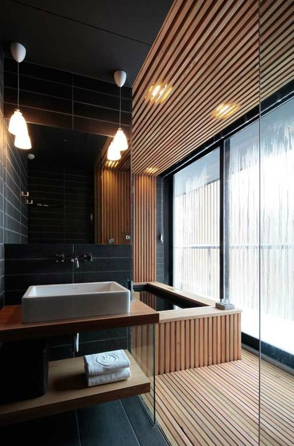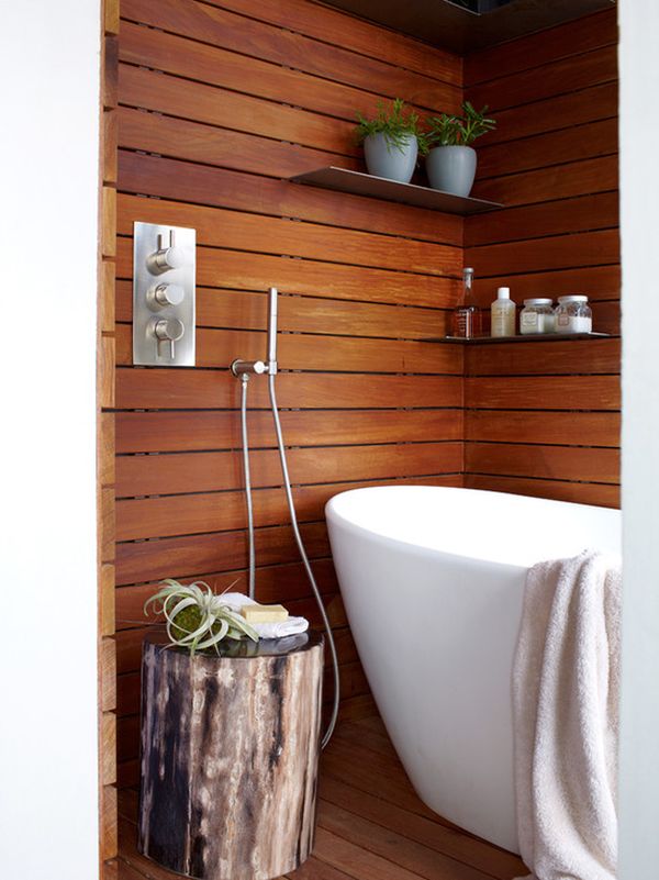 ปกติคุณตกแต่งภายในห้องน้ำด้วยวัสดุอะไรกันบ้างคะ คนส่วนใหญ่นิยมใช้กระเบื้องเข้ามาตกแต่ง เพราะสามารถทนความชื่นและกั้นน้ำได้ดีใช่ไหมคะ ซึ่งรูปแบบการตกแต่งห้องน้ำด้วยกระเบื้องนั้นก็เป็นรูปแบบหนึ่งที่คนส่วนใหญ่นิยมแล้วเราก็พบเห็นได้ตามทั่วไปด้วยล่ะค่ะ แต่ทั้งนี้ทั้งนั้นก็ยังมีในอีกรูปแบบที่คนอีกจำพวกนิยมตกแต่งในห้องน้ำของพวกเขาด้วยเช่นเดียวกันค่ะ นั่นคือการตกแต่งภายในห้องน้ำให้ดูสวยเป็นธรรมชาติด้วยการนำวัสดุธรรมชาติเข้ามาตกแต่งภายใน อาทิเช่น ไม้ หิน เป็นต้น แต่ขณะเดียวกันก็ยังคงไว้ซึ่งดีไซน์ที่ดูทันสมัยและเข้ากับปัจจุบันด้วยเช่นเดียวกัน สำหรับในวันนี้เราก็ขอนำเสนอรูปแบบการตกแต่งห้องน้ำที่โมเดิร์นและเป็นธรรมชาติมาให้คุณชมกันค่ะ หากคุณเบื่อการตกแต่งด้วยการใช้กระเบื้องในรูปแบบเดิมๆ ที่พบเห็นทั่วไป ลองเปลี่ยนมาตกแต่งในแบบใหม่เช่นนี้ ก็สวยดีเหมือนกันนะคะ ว่าแล้วไปชมกันค่ะ
