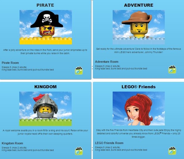 ภายนอกและภายในโรงแรม LEGOLAND ที่ฟลอริด้านี้ ตกแต่งด้วยสีสันสดใสของตัวต่อ LEGO มีห้องพักทั้งหมด 152 ห้องด้วยกัน ห้องพักราคาเริ่มต้นประมาณ 250 เหรียญ++ มีการตกแต่งห้องพักในธีมต่างๆ ทั้งธีม Pirate, Kingdom, Adventure และ LEGO Friends มีห้องนอนสำหรับครอบครัว สำหรับผู้ใหญ่ และเด็กๆ เป็นเตียงสองชั้นน่านอน และปีนป่าย การตกแต่งแต่ละที่ทั้งในและนอกโรงแรมนั้น ตกแต่งได้อย่างสวย และ ครีเอทีฟสุดๆ ไปเลยล่ะค่ะ ว่าแล้วก็ตามเรามาทัวร์กันดูเลยดีกว่า