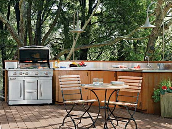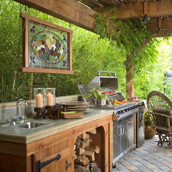 หากว่าคุณเบื่อกับรูปแบบการตกแต่งนอกบ้านแบบเดิมๆ ด้วยการจัดให้เป็นพื้นที่นั่งเล่น พักผ่อนหย่อนใจแล้วล่ะก็ ลองเปลี่ยนบรรยากาศ เปลี่ยนมาตกแต่งให้พื้นที่นอกบ้านที่คุณมีกลายมาเป็นห้องครัวและห้องรับประทานอาหาร สร้างบรรยากาศปาร์ตี้สนุกสนานกับห้องครัวนอกบ้านกันดูสิคะ ในวันนี้เรามีไอเดียห้องครัวสวยๆ ที่อยู่นอกบ้านบริเวณพื้นที่เอ้าท์ดอร์ของคุณ บรรยากาศห้องครัวเหล่านั้น หากอยู่ในเวลาค่ำ มีสมาชิกครอบครัวและเพื่อนฝูงพร้อมหน้าก็คล้ายกับปาร์ตี้หย่อมๆ สร้างสีสันและครื้นเครงไม่น้อย หรือ หากอยู่ในเวลากลางวันก็อาจโรแมนติกได้ไม่ยาก บรรยากาศรอบด้านช่วยให้ผ่อนคลายไปในตัว รับประทานอาหารอย่างเพลิดเพลิน ว่าแล้วเราก็ไปชมไอเดียตกแต่งห้องครัวนอกบ้านกันดูดีกว่าค่ะ ชอบไอเดียไหน เอาไปประยุกต์หรือสร้างแรงบันดาลใจในการตกแต่งบ้านตัวเองได้นะคะ