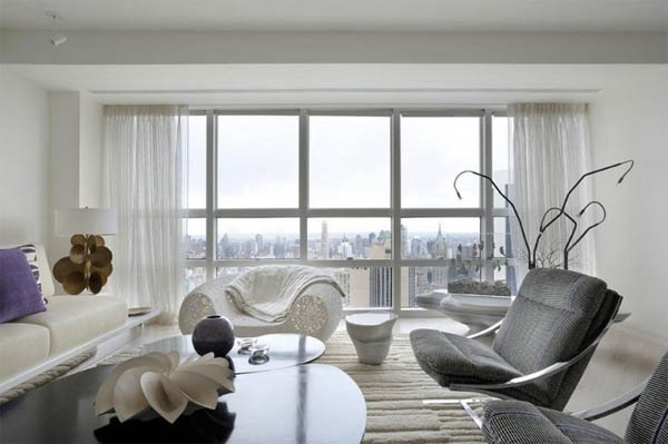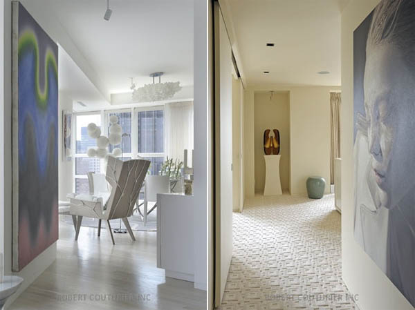 หอศิลป์สุดเดิร์นแห่งนี้ออกแบบไว้อย่างสมบูรณ์แบบโดย Robert Couturie เป็นอพาร์ทเม้นที่ตั้งอยู่ใน Central Park in New York พื้นที่โดยรวมของห้องนี้มีทั้งหมด 450 ตารางเมตร ภายในตกแต่งไว้อย่างโมเดิร์น หรูหราและเต็มไปด้วยผลงานศิลปะ ไม่ว่าจะเป็นภาพวาดงานศิลป์ที่สวยงาม หรืองานปั้นศิลปะรูปทรงโดดเด่นแปลกตา หรือแม้กระทั่งการเลือกดีไซน์ของชุดเก้าอี้โซฟา ที่มีรูปทรงสวยงามเหมือนงานศิลปะทำให้ดูกลมกลืนเหมือนกับเป็นแกลลอรี่ส่วนตัวเลยทีเดียวละค่ะ ว่าแล้วเรามาชมผลานศิลปะภายในอพาร์ทเม้นห้องนี้กันเลยค่ะ