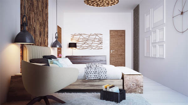 เศษไม้ที่เกิดจากการทำบ้าน หรือทำเฟอร์นิเจอร์ต่างๆ นั้นเราสามารถนำไปประดิษฐ์ ดัดแปลงให้เกิดเป็นของที่มีมูลค่าได้ไม่ยากค่ะ เพียงแค่มีไอเดียสร้างสรรค์นิดหน่อยก็จะทำให้เศษไม้ที่เหลือ กลายเป็นเงินแทนได้ เหมือนตัวอย่างที่เรานำมาให้ชมกันในวันนี้ เป็นห้องนอน ที่มีเตียงนอนและโต๊ะหัวเตียงทำจากไม้ และเมื่อทำเฟอร์นิเจอร์หลักๆ เสร็จแล้วก็จะมีเศษไม้ที่เหลือทิ้งอยู่มากมาย เจ้าของบ้านเลยปิ๊งไอเดียนำเศษไม้ที่เหลือนั้นมาตกแต่งเป็นหัวเตียงเก๋ๆ แทน จากเศษไม้เลยกลายเป็นผลงานศิลปะติดผนังไปเลยค่า ไอเดียแจ๋วใช่มั้ยล่ะคะ 🙂