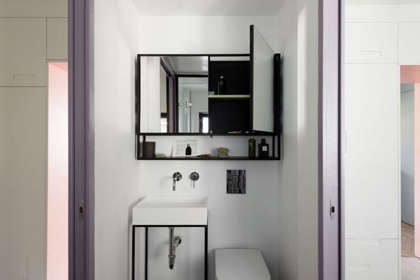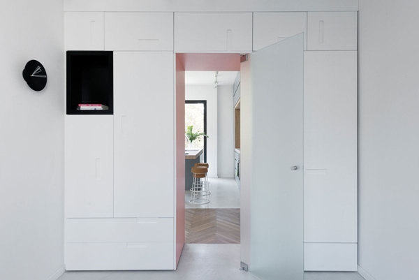 การตกแต่งใช้โทนสีอ่อนไม่ร้อนแรง แต่หลากหลายอย่างสีเทาอ่อน สีชมพู สีเขียว สีฟ้า ร่วมกับโทนสีขาวเป็นหลัก สร้างความสดใสและสบายตาให้กับตัวห้องเป็นอย่างมาก มีการจัดสรรพื้นที่อย่างลงตัว ใช้ประโยชน์ให้ได้สูงสุด อย่างเช่นบริเวณกำแพงข้างประตูเข้าไปในส่วนของห้องนอน ก็เปลี่ยนจากกำแพงโล่งๆ ให้กลายเป็นตู้เก็บของไปด้วย เรียกได้ว่าถึงพื้นที่จะเล็ก แต่ก็มีที่เก็บของให้เพียบเลยล่ะค่ะ ใครที่มีพื้นที่น้อยในห้อง กำลังมองหาไอเดียดีๆ สำหรับตกแต่งอพาร์ทเม้นท์อยู่ ลองมาชมไอเดียนี้ไว้เป็นแรงบันดาลใจใช้ประยุกต์กันดูนะคะ