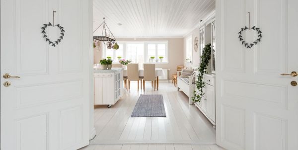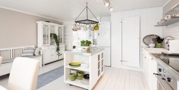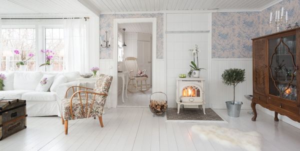 สำหรับกระท่อมหลังนี้ เป็นกระท่อมที่ตกแต่งภายในสไตล์นอร์ดิก เน้นไปด้วยโทนสีขาว ทำให้ดูแล้วละมุนตา ตกแต่งร่วมกับเฟอร์นิเจอร์สีขาว เป็นส่วนใหญ่ มีทั้งที่ดีไซน์แบบร่วมสมัยและวินเทจ โซฟาลายผ้าดอกไม้ หรือ โซฟาเหล็กดัด เป็นอีกสิ่งที่เติมเสน่ห์ให้กับภายในบ้านแลดูโรแมนติกมากขึ้น ผนังวอลเปเปอร์สีสันลายหวานที่แปะเพียงบางส่วนก็ทำห้องดูอ่อนหวานไม่น้อย สิ่งของสีสันต่างๆ ที่แต้มอยู่ภายในไม่มากนัก กลับลงตัวแล้วขับให้ห้องดูโดดเด่น สว่างและสดใสอย่างบอกไม่ถูก ต้นไม้สีเขียวที่ตกแต่งตามส่วนต่างๆ ของกระท่อมก็ลงตัวเหมาะเจาะ เรียกได้ว่าทั้งเฟอร์นิเจอร์ สิ่งของตกแต่ง ต่างรับกันกับบรรยากาศภายในกระท่อมออกมาได้อย่างลงตัว สวยโรแมนติกและน่าอยู่มากๆ เลยล่ะค่ะ เห็นแล้วก็รู้สึกผ่อนคลายไม่น้อย ว่าแล้วเราก็ไปชมกันเป็นไอเดียกันเลยดีกว่า