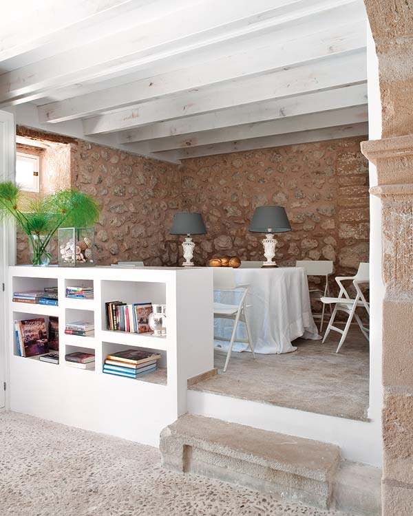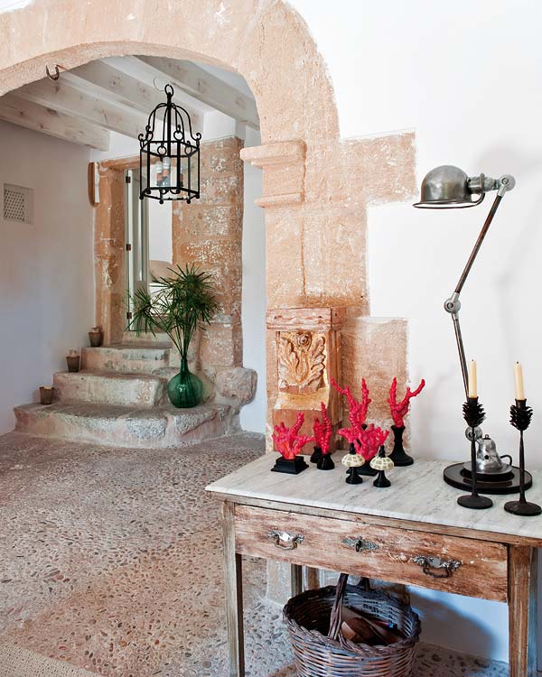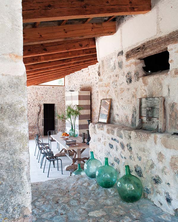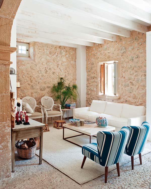 ไอเดียแต่งบ้านวันนี้จะพาคุณมาชมบ้านสวยโรแมนติกใน Mallorca ประเทศสเปน ที่ผสมผสานความเป็นธรรมชาติและความทันสมัยเอาไว้ด้วยกันอย่างลงตัว ภายนอกตัวบ้านร่มรื่นด้วยบรรยากาศที่เต็มไปด้วยต้นไม้ สนามหญ้าสีเขียวขจี มีมุมพักผ่อน ตกแต่งภายนอกตัวบ้านด้วยหิน ชวนให้รู้สึกน่าหลงใหล สวยงามและดูโรแมนติกมากๆ ขณะเดียวกันภายในบ้านก็ตกแต่งประยุกต์ผสมทั้งหิน และ ปูน เข้าด้วยกัน เฟอร์นิเจอร์คลาสสิก เฟอร์นิเจอร์ไม้แบบเก่าๆ ร่วมกับเฟอร์นิเจอร์บางอย่างที่ทันสมัย สร้างความสะดวกสบายให้กับบ้านหลังนี้ แต่ขณะเดียวกันนั้นก็ไม่ละเลยที่จะลืมใส่เอกลักษณ์และเสน่ห์ของธรรมชาติแทรกไปตามรายละเอียดการตกแต่งภายใน