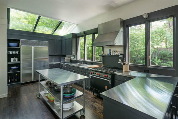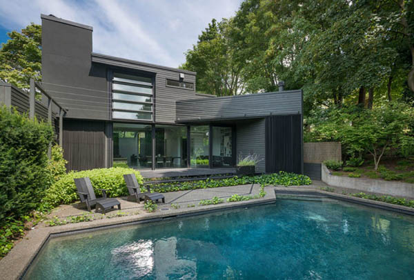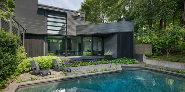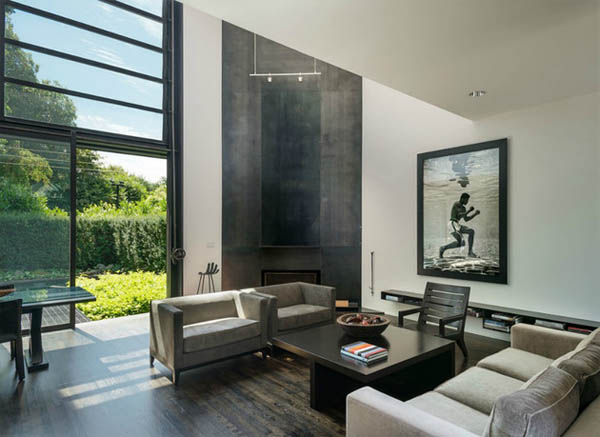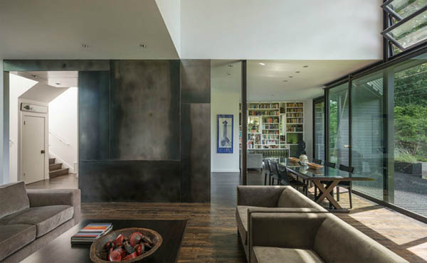 บ้านหลังนี้ออกแบบโดยสถาปนิก Tom Kundig ผู้เชี่ยวชาญในด้านสถาปัตยกรรมสมัยใหม่ที่ได้รับการยอมรับจากอเมริกา และบ้านหลังนี้ออกแบบในสไตล์โมเดิร์น ติดตั้งกระจกบานเลื่อนรอบๆ ตัวบ้านเพื่อเปิดรับแสงแดด และลมเย็นๆ จากภายนอกได้ดี โครงสร้างของบ้านภายนอกทาด้วยสีเทาเข้ม ดูเรียบขรึม แต่ร่มเย็นด้วยสนามหญ้าและต้นไม้ี่ปลูกไว้รอบๆ บ้าน