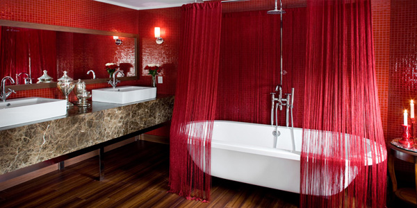 สีแดง เป็นสีที่มีความหมายในเรื่องของ ความรัก ความสวยงาม ความเซ็กซี่ ความรู้สึกเหล่านี้เป็นตัวแทนแสดงอารมณ์ของเจ้าของบ้านได้อย่างดี แต่สีแดงมักไม่เป็นที่นิยมนำมาแต่งบ้านสักเท่าไหร่ แต่หากคุณเป็นคนที่ชื่นชอบในสีนี้ วันนี้เรามีไอเดียการแต่งบ้านด้วยสีแดง สวย เซ็กซี่ มาฝากให้ได้ชมกันค่ะ ไม่ว่าจะเป็นห้องน้ำ, ห้องนอน หรือห้องรับแขก เราก็สามารถแปลงโฉมให้สวย เซ็กซี่ได้ด้วยสีแดง ลองมาชมกันนะค่ะ