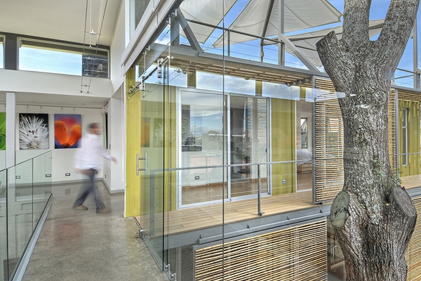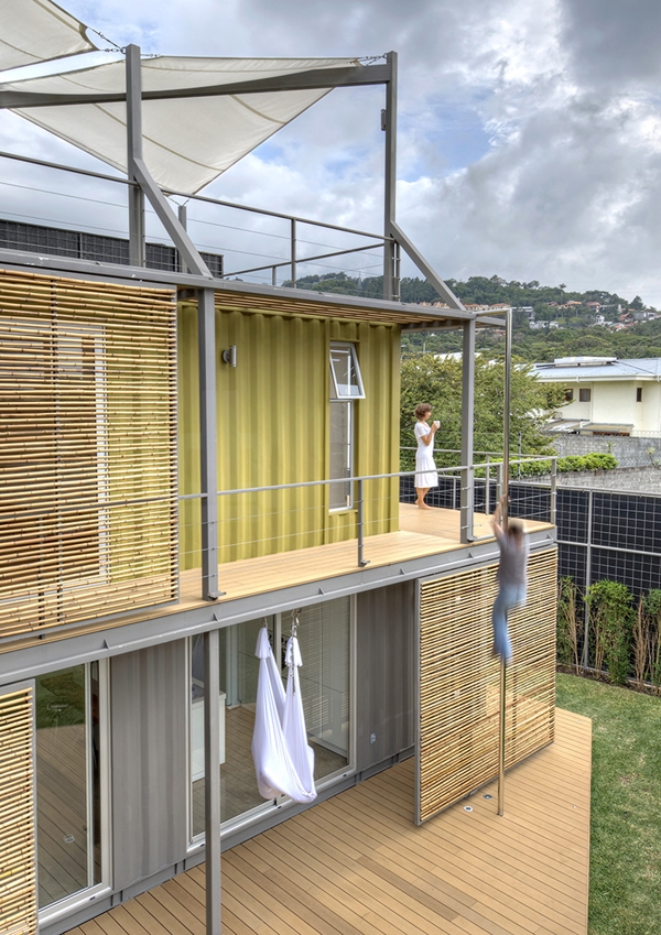 ตัวบ้านโมเดิร์นหลังนี้ สร้างขึ้นจากตู้คอนเทนเนอร์ทั้งหมด 8 ตู้ด้วยกัน มากพอให้เราอาศัยอยู่ด้านในได้อย่างสะดวกสบาย อีกทั้งยังตกแต่งบ้านแบบเป็นมิตรกับสิ่งแวดล้อมอีกด้วยล่ะค่ะ เลือกที่จะไม่ทำลายธรรมชาติ เนื่องจากพื้นที่ของบ้านมีต้นสนซีดาร์ขนาดใหญ่อยู่ แทนที่จะตัดต้นไม้ทิ้ง กลับนำเอาตู้คอนเทนเนอร์มาล้อมรอบเอาไว้แทน และเปลี่ยนให้ต้นสนซีดาร์นั้นกลายมาเป็นส่วนหนึ่งของตัวบ้านได้อย่างกลมกลืน เป็นเอกลักษณ์ของบ้านไปโดยปริยาย