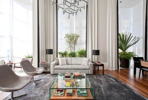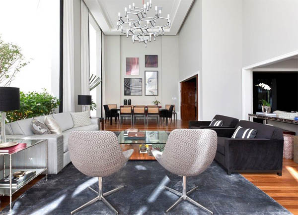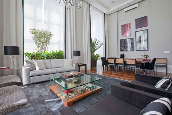 บ้านหลังนี้ออกแบบโดย Luciano Dalla Marta บ้านในแบบบราซิลเลี่ยนจะเน้นพื้นที่ใช้สอยกว้างๆ เพดานยกสูง ตกแต่งภายในในโทนสงบขรึม ดูเรียบเท่และหรูหรา ของใช้ในบ้านเลือกที่มีดีไซน์เก๋ๆ อย่างเช่น โคมไฟแขวน ภาพวาดงานศิลปะ และตกแต่งด้วยชุดโซฟาตัวใหญ่ รองรับสมาชิกในบ้านได้ถึง 10 คนเลยทีเดียวค่ะ ว่าแล้วเรามาชมกันคะ