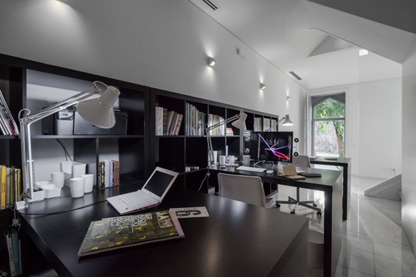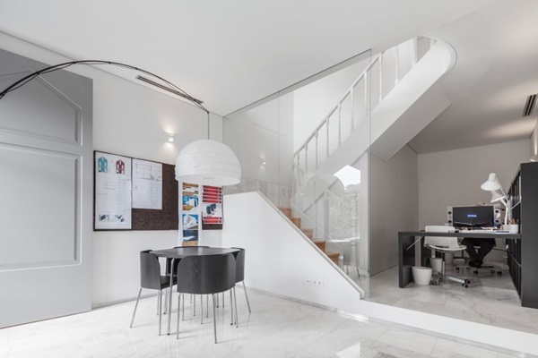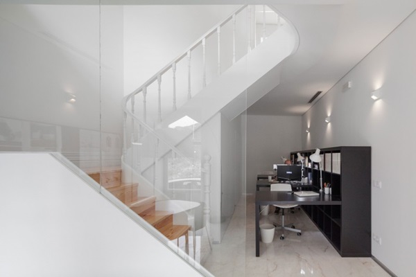 ภายในบ้านหลังนี้ก็ตกแต่งในแบบทันสมัย มีสิ่งอำนวยความสะดวกเพียบพร้อม ตกแต่งในโทนสีขาวสว่างและสีดำ ใช้กระจกใสตกแต่งภายใน กั้นตามบริเวณต่างๆ ให้ดูโมเดิร์น หินอ่อนปูพื้นหรูหรา มีห้องนั่งเล่น ห้องน้ำ ห้องทำงาน ครัว และห้องนอนอยู่ด้านบนสุดของบ้าน อยู่บริเวณใต้หลังคา ภาพรวมของภายในและภายนอกบ้านนี้นั้นก็ดูสวยและน่าอยู่ไม่น้อยเลยนะคะว่ามั้ย ว่าแล้วเราก็ลองไปชมกันดูเองดีกว่า