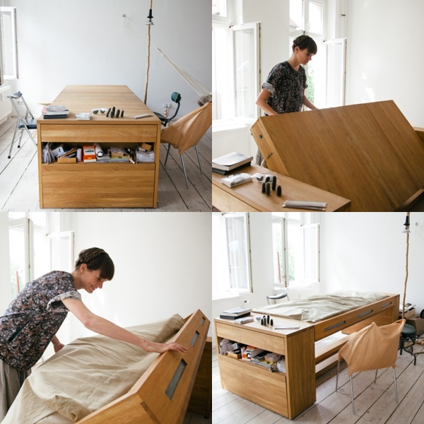 วันนี้เราจะพามาชมไอเดียสุดเจ๋งในการออกแบบเฟอร์นิเจอร์มัลติฟังก์ชั่นกันค่ะ เชื่อว่าหลายคนต้องโดนใจกันแน่ๆ เลย เพราะเป็นเฟอร์นิเจอร์ที่สามารถใช้เป็นโต๊ะทำงานก็ได้ หรือ ทำเป็นเตียงนอนสบายๆ ได้ด้วย โดยเฟอร์นิเจอร์ชิ้นนี้ที่เราพูดถึงอยู่นั้นเป็นทั้งโต๊ะและเตียงที่ออกแบบโดย Mira Schroder