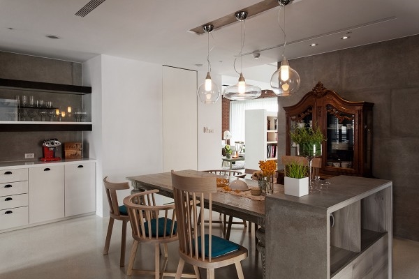 สำหรับบ้านหลังนี้ เป็นบ้านที่มีพื้นที่ใช้สอย 165 ตร.ม. ตั้งอยู่ที Taichung Nam Theun ในประเทศไตหวัน ภายในใช้เฟอร์นิเจอร์ร่วมสมัยมาตกแต่งร่วมกับเฟอร์นิเจอร์คลาสสิกออกมาได้อย่างลงตัว โทนสีที่ใช้ก็เป็นโทนสีอ่อนๆ ทำให้บรรยากาศภายในดูอบอุ่นและผ่อนคลายได้มาก นอกจากจะมิกซ์สไตล์ภายในบ้านแล้ว ยังมิกซ์วัสดุตกแต่งบ้านอีกด้วย นะคะ ทั้งอิฐ ปูน ซีเมนต์ ใช้ตกแต่งกำแพงมุมนั้นมุมนี้ แตกต่างกันไป แต่ก็ไม่ได้ดูขัดกันเลย กลับลงตัวดี รวมไปถึงการใช้เฟอร์นิเจอร์ไม้อีกด้วย
