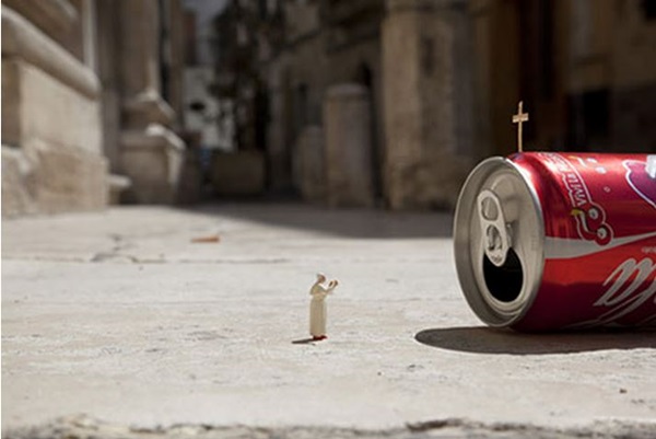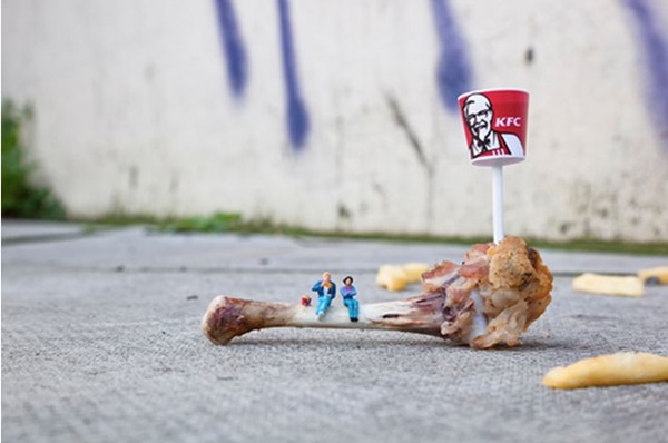 แต่ทั้งนี้ทั้งนั้น แม้ว่าไอเดียจะดีแค่ไหนก็ตาม แต่ภาพถ่ายเหล่านี้ก็เหมือนเป็นดาบสองคมที่สะท้อนให้เห็นอีกด้านของโลกเราได้อยู่เหมือนกันนะคะ ด้านแรกขาวสะอาด เต็มไปด้วยจินตนาการความคิดสร้างสรรค์ อีกด้านกลับดำมืดกับการกระทำที่มักง่าย ผู้คนทิ้งขยะกันตามพื้น ทิ้งไม่ลงถัง ดูไปแล้วก็สะท้อนสังคมได้ดีเหมือนกัน ซึ่งสำหรับภาพงานศิลปะคนจิ๋วเหล่านี้ หลังจากที่เราได้ชม ได้ทึ่งกับความคิดสร้างสรรค์ไปแล้ว ไม่แน่นะ ศิลปินอาจจะต้องการสื่ออะไรบางอย่างออกมาจากภาพถ่ายของเขาด้วยก็ได้