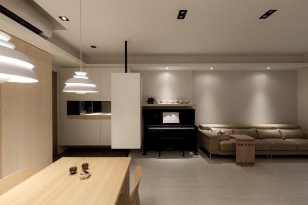 ภายในตกแต่งด้วยโทนสีขาว สว่าง ดูแล้วสบายตา ร่วมกับเฟอร์นิเจอร์ไม้สีอ่อนสไตล์โมเดิร์นตามบริเวณต่างๆ มีมุมห้องนั่งเล่น ห้องครัว และ ห้องรับประทานอาหารอยู่ใกล้ๆ กัน มีเปียโนสีดำตัดกับกำแพงสีขาวได้อย่างโดดเด่น บรรยากาศภายในโปร่งโล่งสบายตาด้วยโทนสีอ่อนๆ ของไม้ ห้องนอนตกแต่งได้สวยและเรียบง่ายอย่างลงตัว ตกแต่งภายในห้องนอนด้วยเฟอร์นิเจอร์ไม่กี่ชิ้น