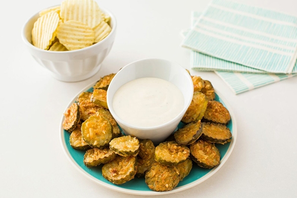 ไอเดียที่ 1 แตงกวาดองชุปเกล็ดมันฝรั่งทอดกรอบทอด ทานคู่กับน้ำสลัดเพลินๆ