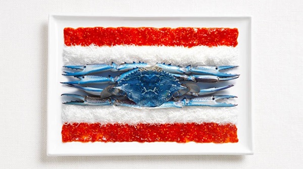 1. ธงไทย ทำจากน้ำจิ้มไก่ มะพร้าวขูด และ ปูม้า