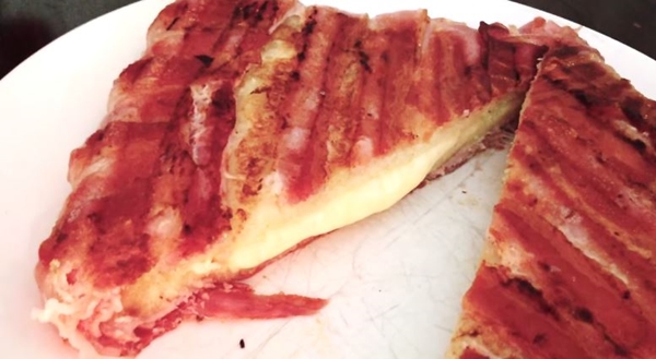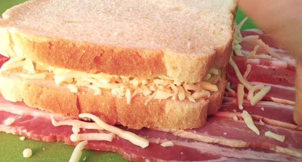 มีเมนูแซนด์วิชเบคอนชีส รูปแบบใหม่ ที่เบคอนไม่ได้ถูกขนมปังประกบเหมือนปกติทั่วไป แต่กลับอยู่ด้านนอกเป็นตัวประกบขนมปังกันต่างหาก บอกเลย ใครใจไม่ถึง กลัวอ้วน อย่าดู เพราะเมนูนี้มันเน้นที่ชีสเยิ้มๆ เบคอนหอมอร่อย บอกเลยใครเห็นก็อาจจะอดใจไม่ไหว อยากจะทำกินกันจริงๆ จังๆ แล้วน้ำหนักจะพุ่งขึ้นมา เดี๋ยวจะยุ่งกันไป จุดนี้เราก็ไม่รู้จะช่วยอย่างไรกันดี