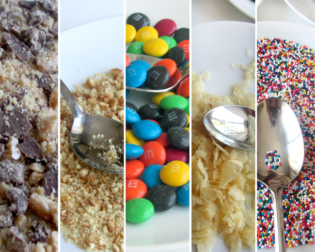 3. Topping สำหรับโรยหน้าช็อกโกแลตตามที่ต้องการ เช่น อัลมอนด์,M&M,ซีเรียล,ช็อกโกแลตโรย และอื่นๆ