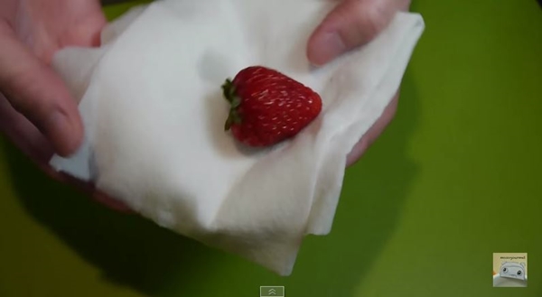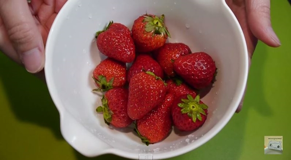 STEP 9 เอาสตรอเบอร์รี่ที่เตรียมเอาไว้ออกมาล้างให้สะอาดแล้วใช้ผ้าเช็ดให้แห้ง