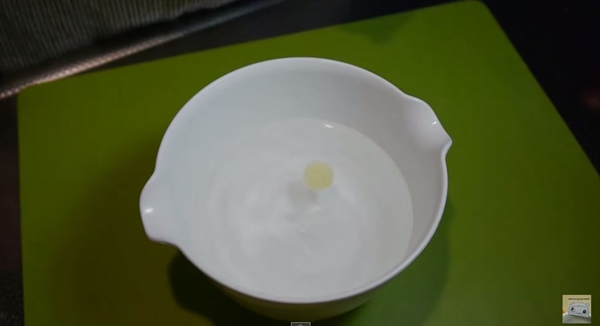 STEP 1 ใส่เกลือลงในชามที่มีน้ำเตรียมไว้ สำหรับล้างแอปเปิ้ล เพื่อป้องกันเนื้อแอปเปิ้ลเปลี่ยนสี