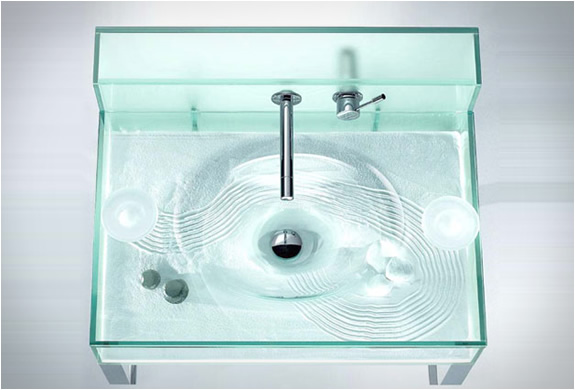 เว็บไซต์สำหรับขายผลิตภัณฑ์เกี่ยวกับตกแต่งบ้านอย่าง Opulent Items นี้นั้น ได้เสนอผลิตภัณฑ์ที่มีดีไซน์น่าทึ่งอย่าง Moody Aquarium Sink ซิงค์ล้างมือตู้ปลา ซึ่งเป็นซิงค์ล้างมือที่คล้ายกับตู้ดิสเพลย์ที่สร้างขึ้นจากกระจกใส ทำให้มองเห็นภายในและบริเวณด้านบนซิงค์นั้นมีจุดที่ใช้สำหรับเติมน้ำเข้าไปด้านในตู้กระจกใสและใช้เป็นบริเวณให้อาหารของปลาได้ด้วยล่ะค่ะ ซึ่งจะเป็นจุกกลมๆ พลาสสติกที่ติดอยู่ด้านบนกระจกใสสองฝั่งขนาบข้างที่ล้างมือ ภายในเฟอร์นิเจอร์ซิงค์ล้างมือนี้ตกแต่งและออกแบบภายในให้ดูสวยงามใต้น้ำเช่นเดียวกับภายในตู้ปลาเลยทีเดียวค่ะ และยังมีระบบกรองการไหลเวียนของน้ำ ออกซิเจน และแสงแดดด้วยนะคะ ซึ่งคุณสามารถหาปลามาปล่อยและเลี้ยงมันภายในซิงค์ล้างมือนี้ได้ เวลาล้างมือคงจะเพลินตากับการมองเหล่าปลาน้อยแหวกว่ายในน้ำที่อยู่ภายในกันอย่างเพลิดเพลินกันเลยล่ะค่ะ