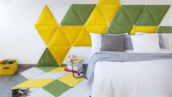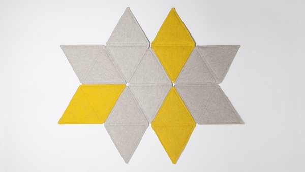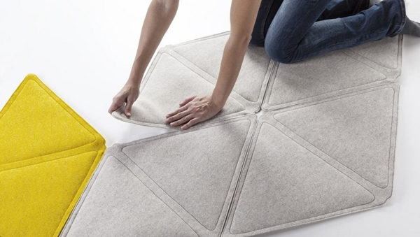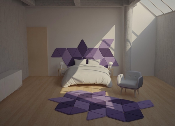 พรม Edera พรมแบบ Modular ที่จะมาช่วยคุณอัพเกรดการตกแต่งภายในบ้านให้สวยมีสไตล์ขึ้นได้ง่ายๆ ผลงานการออกแบบของดีไซเนอร์ชาวอิตาลีที่ชื่อ Loris De Grandi ออกแบบพรม Modular ให้เป็นรูปร่างสามเหลี่ยม ตัวพรมจะมีลักษณะเป็นสามเหลี่ยมด้านเท่า ตรงกลางพองด้วยฟองน้ำ นุ่ม สบาย ขณะที่รอบข้างสามเหลี่ยมจะถูกเย็บด้วยแถบเวลโคร (เทปตีนตุ๊กแก) สำหรับติดแต่ละชิ้นของพรม Edera เข้าด้วยกันได้ง่ายๆ ทำออกมาหลายชิ้น หลายสี เพื่อให้เรานำมาใช้ต่อติดกัน สลับสีสัน สร้างสรรค์เป็นพรมผืนใหญ่ที่สวยงามในรูปแบบดีไซน์ต่างๆ ตกแต่งภายในบ้านเรานั่นเองค่ะ ซึ่งก็สามารถใช้วางตกแต่งบริเวณที่พื้น เป็นพรมตกแต่งพื้นห้องสวยๆ หรือ จะใช้เป็นพรมตกแต่งบริเวณกำแพง หัวเตียงนอน หรือบริเวณอื่นๆ ตามใจคุณก็ได้