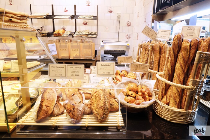 PAUL สาขาสยามพารากอน แบ่งออกเป็น 2 ส่วน ได้แก่ Boulangerie Patisserie เต็มไปด้วยของหวานหลากหลายเมนูที่ส่งกลิ่นหอมอบอวลเพียงแค่เดินผ่าน สามารถสั่งคู่กับเครื่องดื่มไปทานในร้านหรือจะสั่งกลับบ้านก็ได้