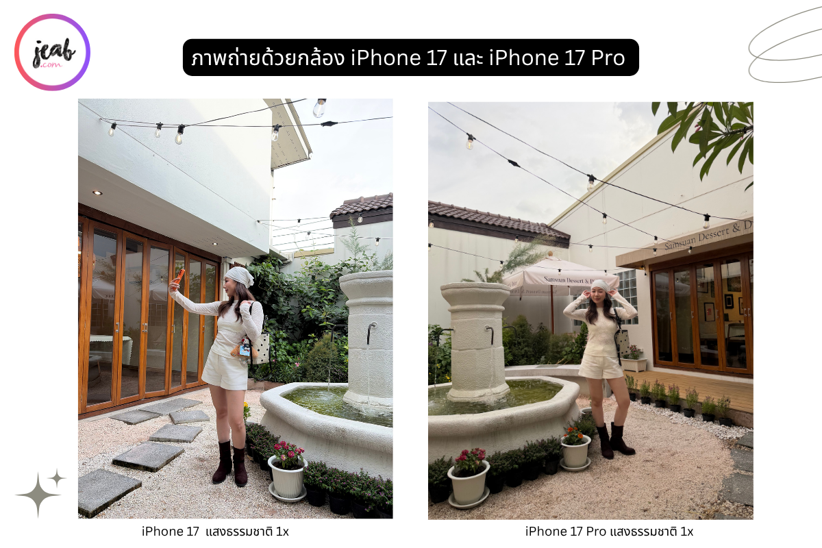 อย่างที่รู้กล้อง iPhone แนวเรียลอยู่แล้ว เรื่องโทนสี Skintone ก็สามารถปรับแต่งสีเลือกโทนสีที่ชอบกับฟีเจอร์ Styles ของรูปภาพกันได้ ที่เห็นชัดเลย คือ ทั้งสองรุ่นภาพคมชัดมาก กล้องหน้า ความละเอียดสูงขึ้นเยอะ แต่ถ้าให้เทียบกันระหว่างสองรุ่น เรารู้สึกว่า iPhone 17 Pro ถ่ายออกมาแล้ว ส่วนตัวคิดว่าสวยจึ้งกว่า เพราะดีเทลอะไรคมชัดไปหมด แต่ตรงนี้แล้วแต่ความชอบแต่ละคนด้วย แนะนำให้ลองไปเล่นดูที่ช็อปอีกครั้งก่อนตัดสินใจก็ได้