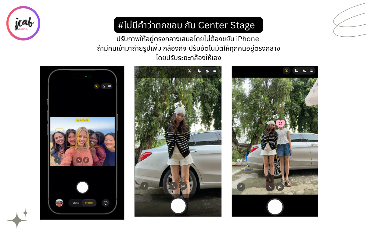 ◾ ตัว Center Stage จะถ่ายรูปกับเพื่อน ถ่ายตัวเอง ถ่ายกับใคร เราก็ไม่มีทาง #ตกขอบ จอกันอีกแล้ว เพราะ iPhone 17 ใส่ฟีเจอร์ Center Stage เข้ามาเหมือนกับตัว MacBook M4 เข้ามาให้ใช้แล้ว ซึ่งจะจัดหน้าเราให้อยู่ตรงกลางสำหรับภาพถ่ายอยู่ตลอด หรือ อยู่ตรงกลางสำหรับวิดีโอคอลได้ด้วย