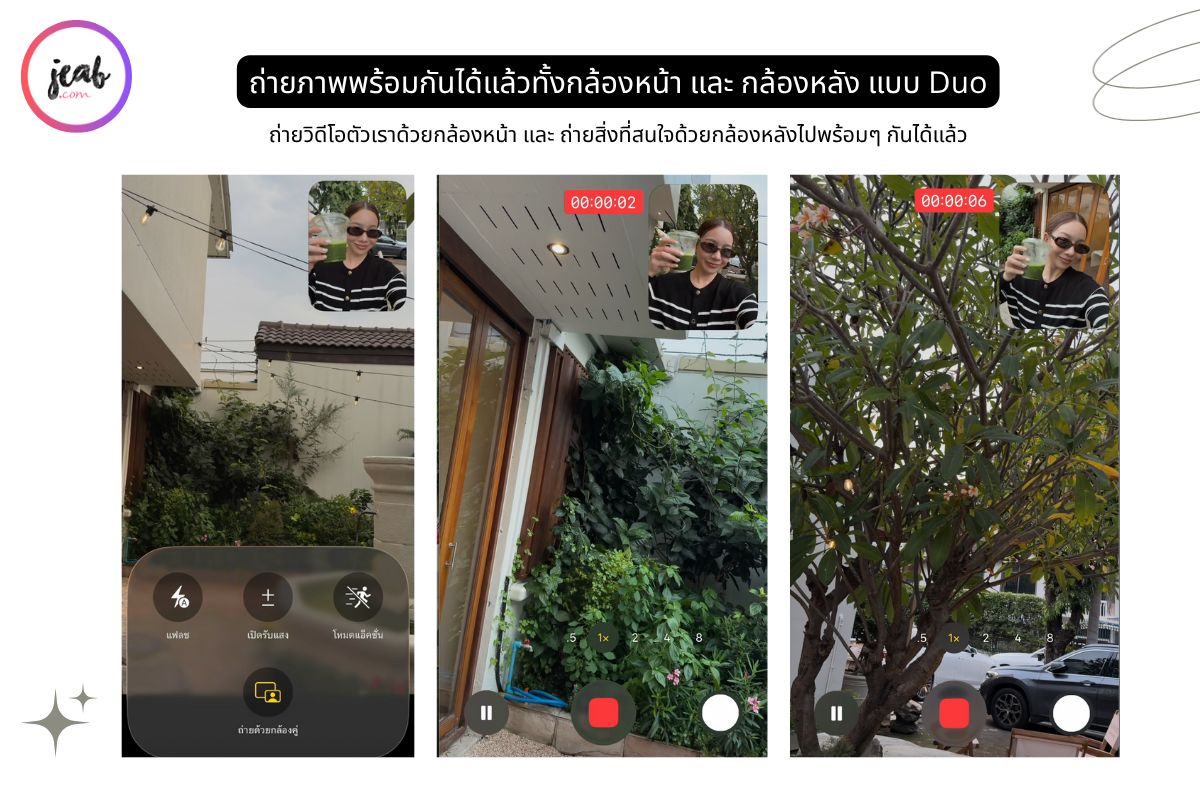 ◾ ถ่ายด้วยระบบกล้องคู่ได้ สามาถรถ่ายออกมาพร้อมกันทั้งกล้องหน้า กล้องหลัง ไปด้วยกันได้เลย