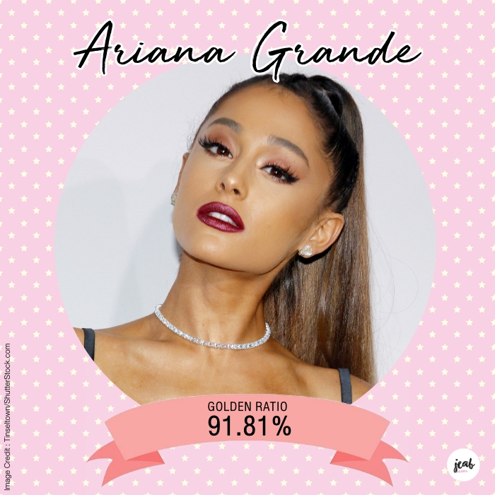#4 Ariana Grande – ความสมบูรณ์ของใบหน้าตามสัดส่วนทองคำ 91.81%