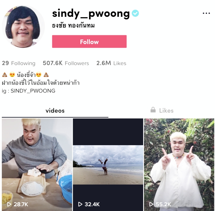 ปิงปอง ธงชัย หรือ กอล์ฟ จากไดอารี่ตุ๊ดซี่ส์ อีกหนึ่งนักแสดงมากความสามารถ ที่มาสร้างรอยยิ้ม เสียงหัวเราะ ให้กับแฟนๆ ทุกครั้ง ที่เจอบน TikTok แม้ว่าจะพึ่งเริ่มสร้างสรรค์คอนเทนต์บน TikTok ได้ไม่นาน แต่ต้องบอกเลยว่า คลิปวิดีโอของเขา ทุกคลิปปังแบบฉุดไม่อยู่ ยิ่งคลิปลิปซิงค์แม่สิตางค์แล้วล่ะ ก็เป๊ะมาก หรือแม้แต่คลิปวิดีโอ เป็นความสามารถพิเศษ ที่เจ้าตัวโชว์ความสามารถที่น้อยคนจะทำได้ สร้างยอดวิวสวยๆ อยู่ที่ 9.7 ล้าน