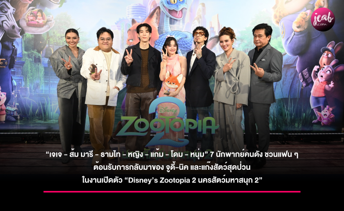 “เจเจ – ส้ม มารี – ธามไท – หญิง – แก้ม – โดม – หนุ่ม” 7 นักพากย์คนดัง ชวนแฟน ๆ ต้อนรับการกลับมาของ จูดี้-นิค และแก๊งสัตว์สุดป่วน ในงานเปิดตัว “Disney’s Zootopia 2 นครสัตว์มหาสนุก 2” ซื้อตัวล่วงหน้าได้แล้ววันนี้ ก่อนฉายจริง 27 พฤศจิกายน ในโรงภาพยนตร์ทั่วประเทศ