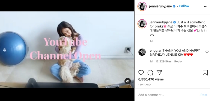 เมื่อวันที่ 16 ที่ผ่านมาสาวเจนนี่ Blackpink สร้างเซอร์ไพร์ให้กับแฟนคลับด้วยการเปิดช่อง Youtube ของตัวเอง ในวันแรกมีคนติดตาม 1.75 ล้านคน และในปัจจุบัน (18 มกราคม 2564) มียอด View สูงถึงเกือบ 10 ล้านวิว มีคนติดตามกว่า 2.5 ล้านคน โดยในวิดิโอแรก “Hello world . From Jennie” เป็นการทักทายง่ายๆ แบบเป็นกันเองของสาวเจนนี่ เห็นไลฟ์สไตล์เบาๆ แบบที่เราไม่ค่อยได้เห็น