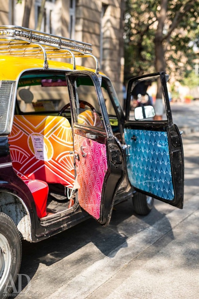 และล่าสุดอีกหนึ่งแท็กซี่ที่น่าจดจำ คงหนีไม่พ้น รถแท็กซี่ที่มุมไบ ประเทศอินเดียกันเป็นแน่ เพราะเมื่อไม่นานมานี้ ศิลปินในอินเดีย ต่างก็เปลี่ยนมาเนรมิตรถแท็กซี่ที่มุมไบ โดยใช้ผ้าที่วาดลวดลายโดยศิลปินในประเทศมาเป็นวัสดุตกแต่งลายเบาะที่นั่งทั่วทั้งคันรถ ทำให้รถแท็กซี่ของที่นี่กลายเป็นรถที่มีเอกลักษณ์ แถมยังดูสดใสมากทีเดียว
