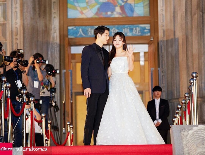 #5. งานประกาศรางวัล 52nd BaekSang Awards ซงจุงกิและซงฮเยคโย คอนเฟิร์มไปร่วมงาน แต่ที่พาฟินกว่านั้น คือทั้งคู่มาด้วยกัน และ เดินเคียงข้างกันมา ในมาดที่ทำเอาฮือฮา เพราะชุดที่ซงฮเยคโยใส่ ดูเหมือนชุดเจ้าสาว สวยมากๆ (ซึ่งชาวเน็ตก็สืบกันมาว่าเป็นชุดในคอลเลคชั่น Wedding นะจ๊ะ) จนนึกว่านี่มางานแต่งงาน ไม่ใช่งานประกาศรางวัลนะเนี่ย