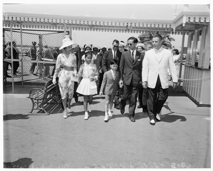 ในหลวงรัชกาลที่ 9 พร้อมด้วยสมเด็จพระนางเจ้าฯ พระบรมราชินีนาถ พระราชโอรส และพระราชธิดา ได้เสด็จประพาสประเทศสหรัฐอเมริกาตามคำตามคำกราบบังคมทูลเชิญของประธานาธิบดี Dwight D. Eisenhower ประธานาธิบดีคนที่ 34 ของอเมริกา จากนั้นพระองค์ทรงได้เสด็จพระราชดำเนินไปยัง “ดิสนีย์แลนด์” โดยมีนายวอลต์ ดิสนีย์ มารับเสด็จ และได้มีการฉายพระบรมฉายาลักษณ์ร่วมกับนาย วอลต์ ดิสนีย์ ที่ดิสนีย์แลนด์ด้วย