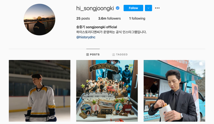 หลายคนทราบดีว่าในอดีต พระเอกหนุ่ม ซง จุงกิ ไม่เล่นโซเชียล โดยในอดีตจุงกิเคยให้สัมภาษณ์ผ่านรายการ KBS9 ว่าเหตุผลที่เขาไม่เล่นโซเชียลก็ไม่มีอะไรมาก เขาแค่เป็นคนโลว์เทคโนโลยี เล่นไม่เป็นก็เท่านั้น ดังนั้นเราจึงมักจะเห็นจุงกิไปโผล่ตามโซเชียลของคนอื่นๆ อยู่เสมอ และด้วยความที่ไม่มีโซเชียลนี่แหละ บรรดาแฟนคลับจึงต้องคอยสอดส่องโซเชียลของเพื่อนนักแสดง เพื่อนฝูงหนุ่มจุงกิเป็นประจำ เพราะมักจะเห็นจุงกิไปโผล่ให้ชื่นใจอยู่ร่ำไป ใครที่ติดตามหนุ่มจุงกิเป็นประจำ ก็จะรู้ว่าผู้ชายคนนี้ ถึงเขาจะไม่เก่งโซเชียล แต่แน่นอน เขาเก่งเซลฟี่อย่างแรงนะจ๊ะ แต่ล่าสุดในปี 2021 ก็นับว่าเป็นข่าวดีของแฟนๆ ที่จะได้ติดตามหนุ่มจุงกิอย่างใกล้ชิดผ่านโซเชียลมีเดียมากขึ้น เพราะเขายอมเปิด Instagram Account ของตัวเองขึ้นมาแล้ว ในชื่อว่า hi_songjoongki แถมยังโพสต์รูปแรกในวันวาเลนไทน์ 14 กุมภาพันธ์ 2021 ให้ของขวัญกับแฟนๆ อีกด้วย