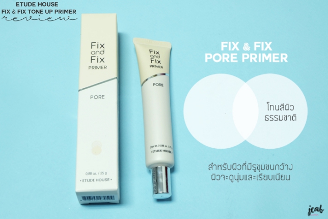 เอาล่ะ เกริ่นไปสักเล็กน้อยแล้ว เรามาเข้าเรื่องกันต่อดีกว่าเนอะ สำหรับวันนี้เรามีไอเท็มในการปรับโทนสีผิวมารีวิวให้เพื่อนๆ ได้เห็นกันชัดๆ นั่นก็คือ Etude House “FIX & FIX TONE UP PRIMER” เป็นไพรเมอร์ที่มีเนื้อที่เบาบาง ช่วยให้รองพื้นในชั้นต่อไปติดทน และเผยสีรองพื้นที่แท้จริงมากยิ่งขึ้น