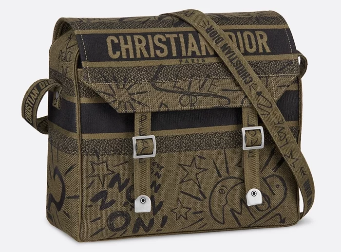DiorCamp ยังโดดเด่นด้วยวัสดุแคนวาสปักลวดลายทั้งโมโนแกรม Oblique และลวดลายประจำซีซั่น ฝาปิดด้านหน้าใช้เป็นที่ล็อกแบบหัวเข็มขัด มาพร้อมกับสายยาวที่ใช้เป็นครอสบอดี้ได้ง่ายๆ ผสมผสานทั้งความเท่ ความหรูหรา ไว้ด้วยกัน