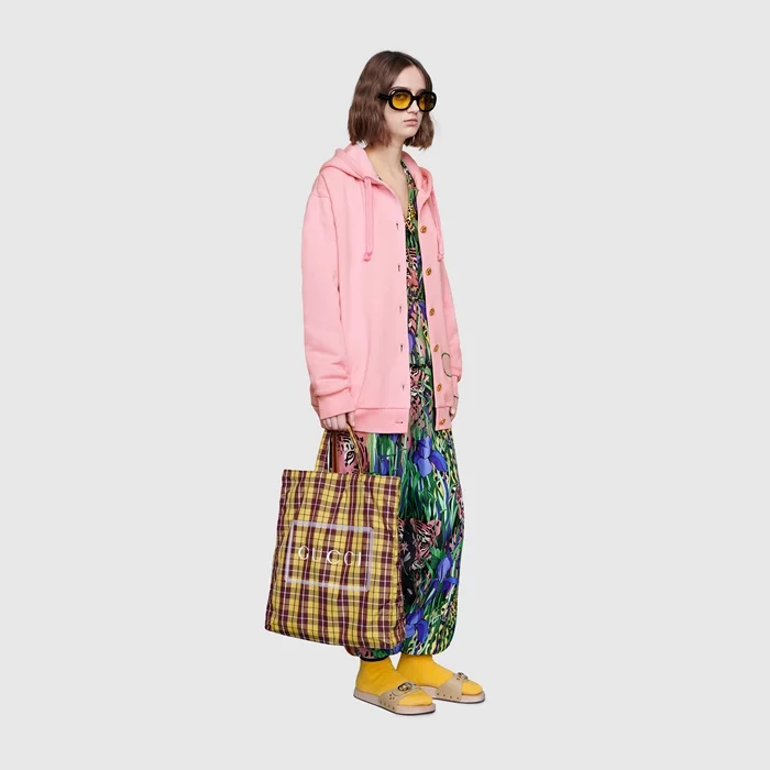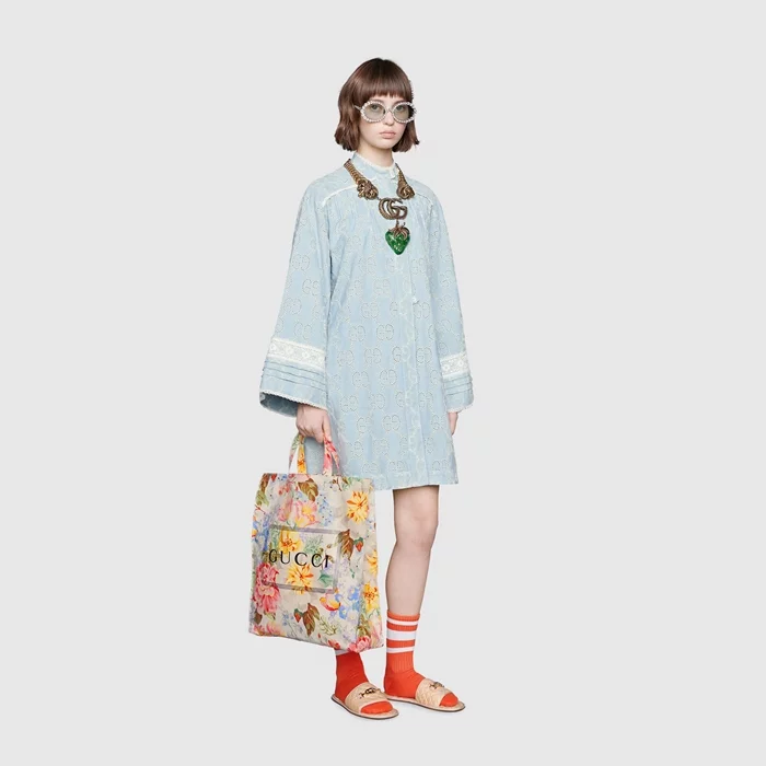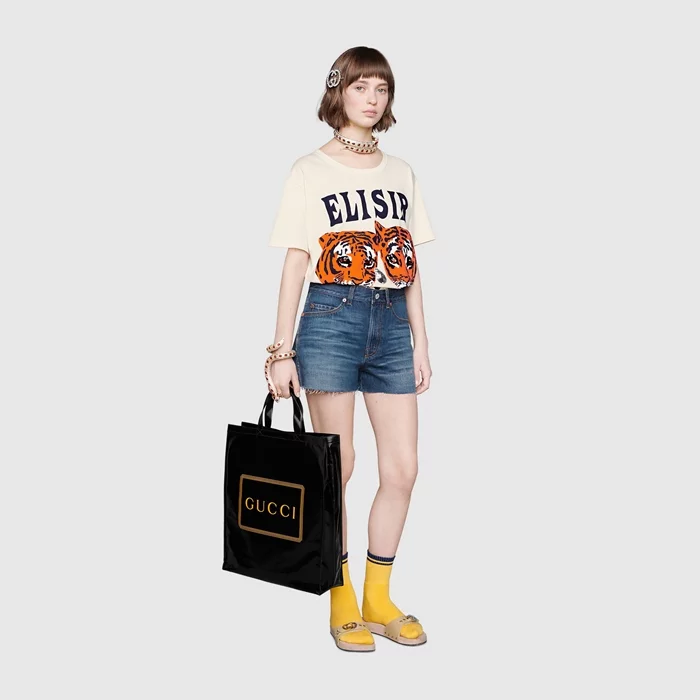 Easy Bag ใบใหม่จาก Gucci กับโท้ตพิมพ์ลายที่สามารถหยิบมาใช้ได้ง่ายๆ ในทุกวัน โดยมีทั้งหมด 4 ลวดลาย ทั้งสีพื้น ลายดอกไม้ และลายตาราง ทำมาจากไนลอนและคอตตอนเคลือบ มีขนาด 15″W x 16.5″H x 4″D ราคาใบละ $790 หรือประมาณ 25,000 บาท