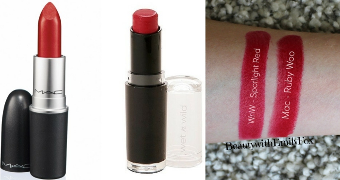 1. MAC Ruby Woo VS Wet n Wild MegaLast Lip Color in Spotlight Red