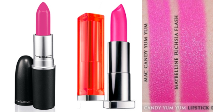 4. MAC Candy Yum Yum VS Maybelline Fuchsia Flash